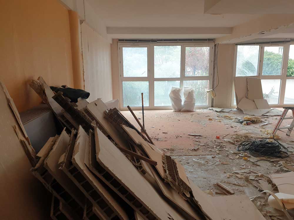 • Démolition intérieure complète : dépose des anciens aménagements pour repartir sur une base saine.