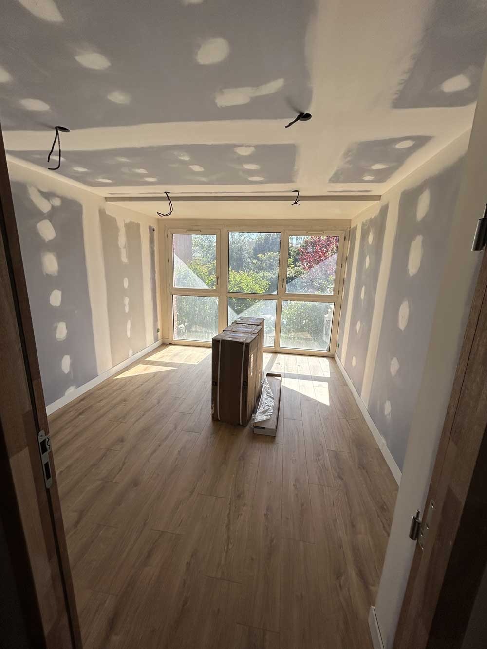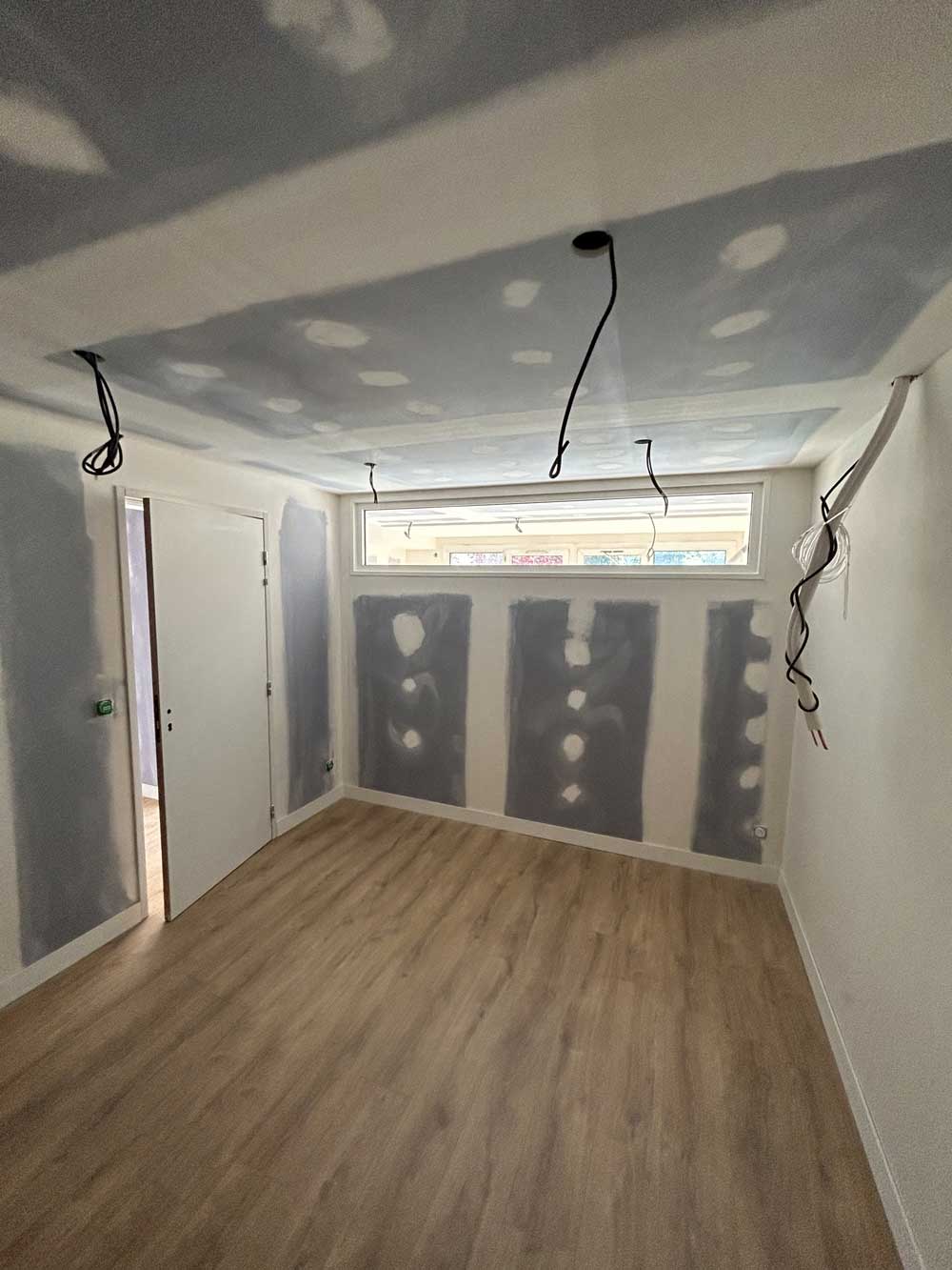 Résultat attenduÀ l’issue des travaux, le cabinet bénéficie d’un agencement moderne, fonctionnel et parfaitement insonorisé, répondant aux besoins spécifiques de la psychothérapie. Les nouveaux bureaux offrent un cadre chaleureux et privé, essentiel pour la relation thérapeute-patient.
