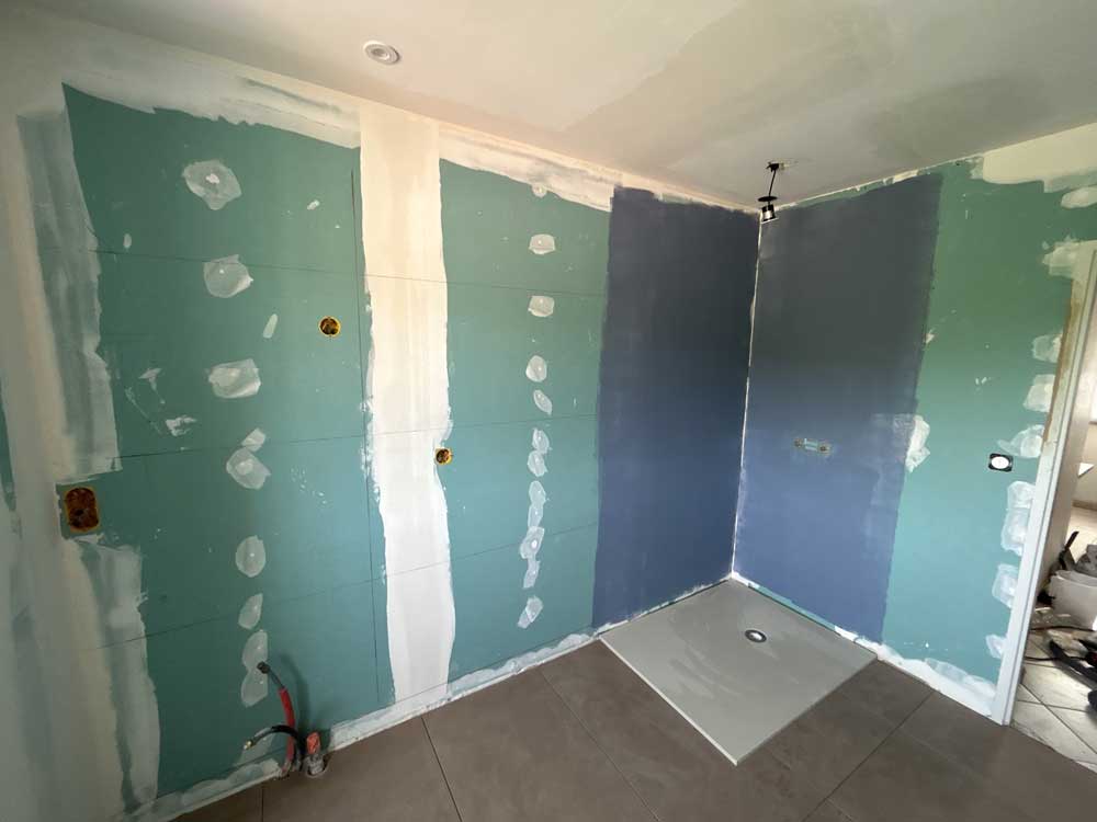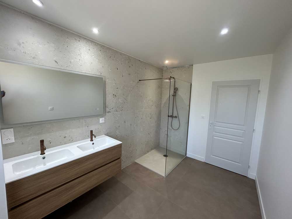 - Pose de carrelage et faïence grand format (60 x 120 cm) avec double encollage, pour un rendu moderne et élégant.
